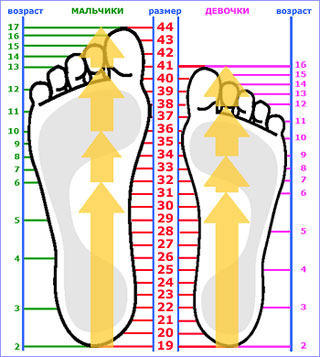 Чтобы точнее определить нужный для вашего ребенка размер обуви, измерьте длину его стопы (для этого можно обвести его ножку карандашом на листе бумаги) и обратитесь к таблице.